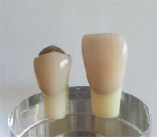 むし歯の進行がひどい場合すっぽりとかぶせて補填するもの、俗に言うさし歯のことです。 |